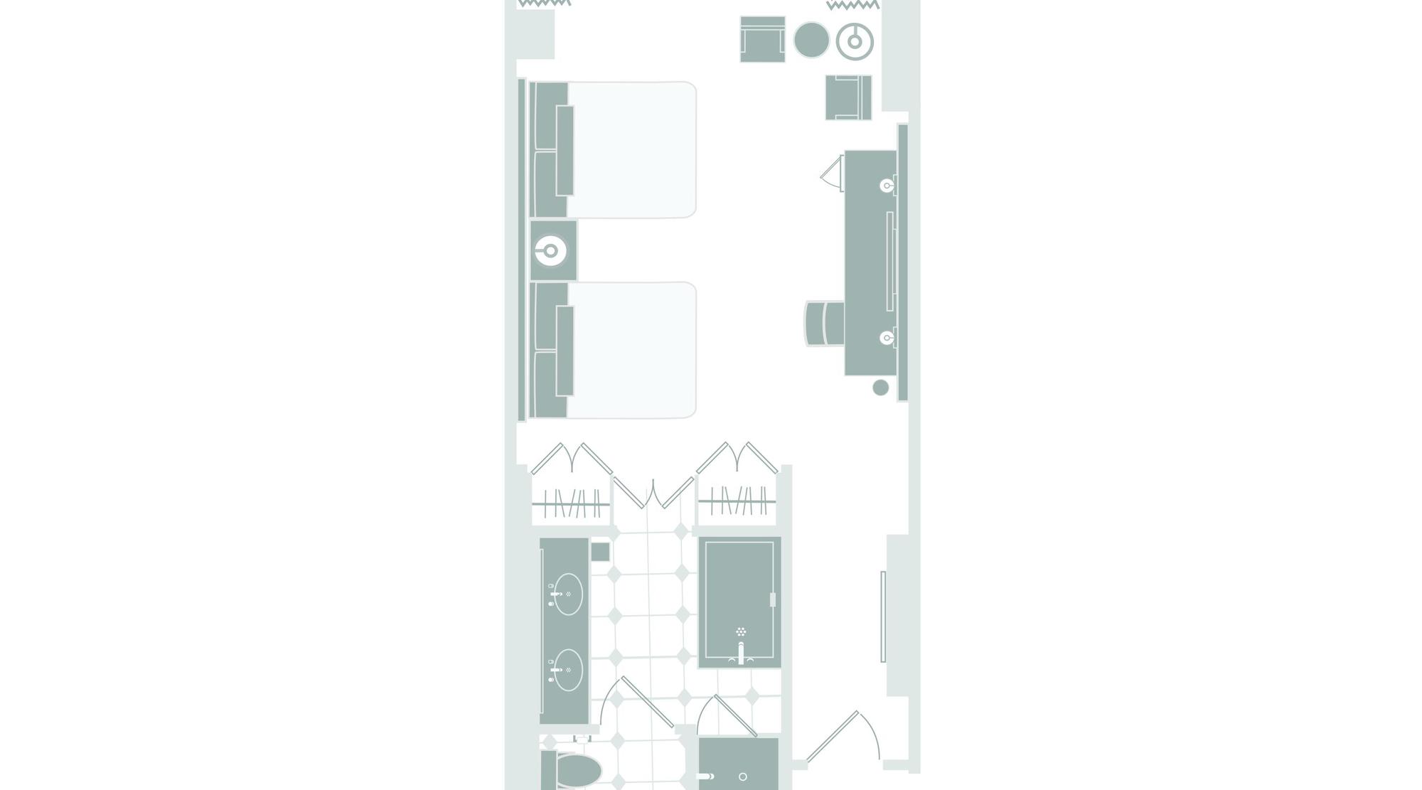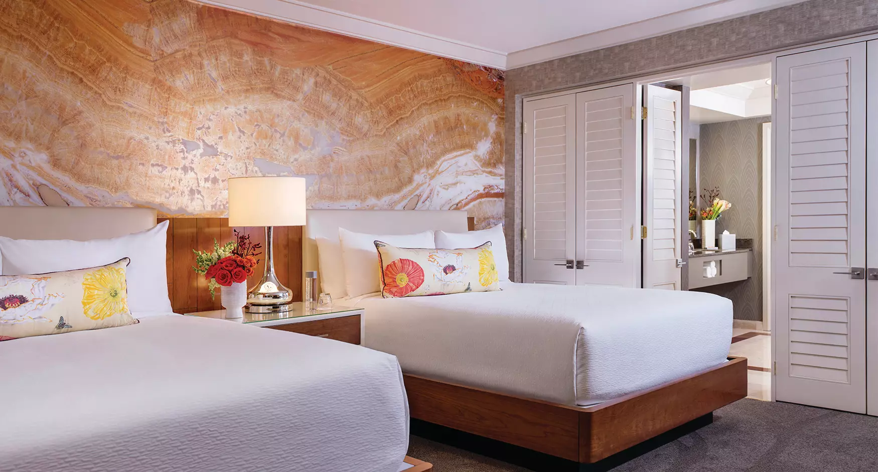 The 550 sq. ft. Resort Queen room is leisure expressed with enhanced furnishings and a uniquely bold Mandalay Bay style. Comfortably furnished with two Queen Beds and seating for three, the Resort Queen offers a balance of comfort and style.