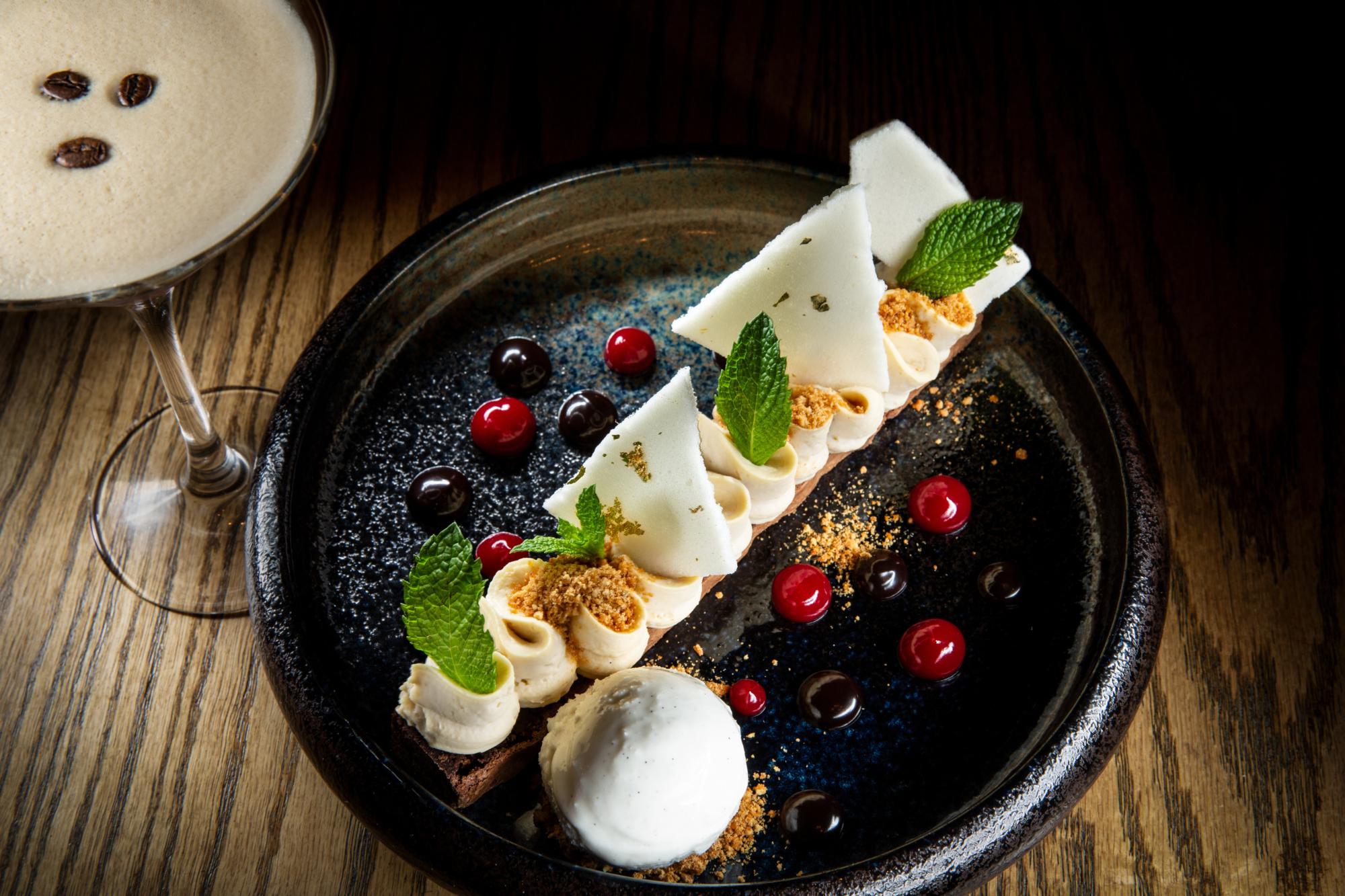 Candied Ginger, Godiva Liqueur, 24 Karat Milk Crisp, Diplomat Cream