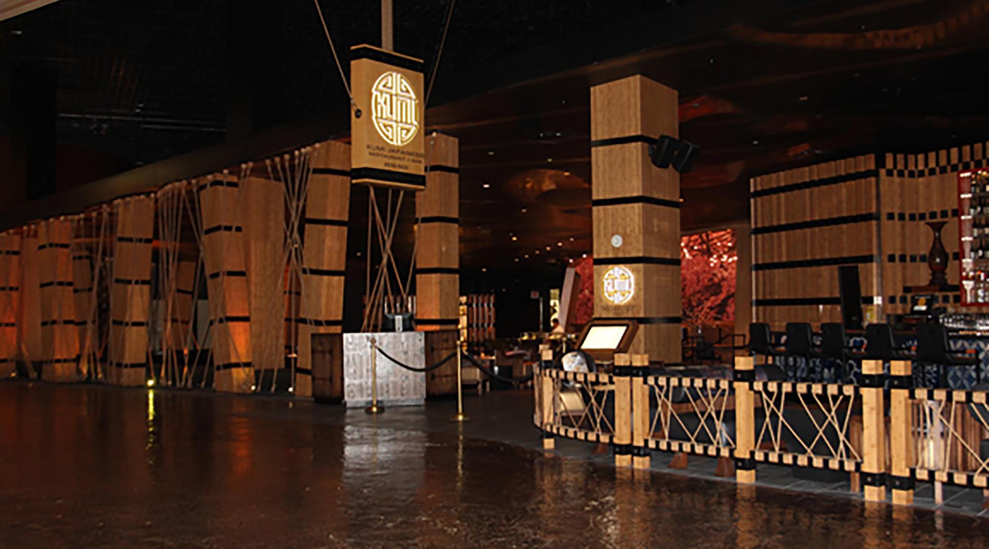 Walk past guest elevators to the casino floor and follow the pathway along the left hand side. Continue straight and Kumi will be on the right.